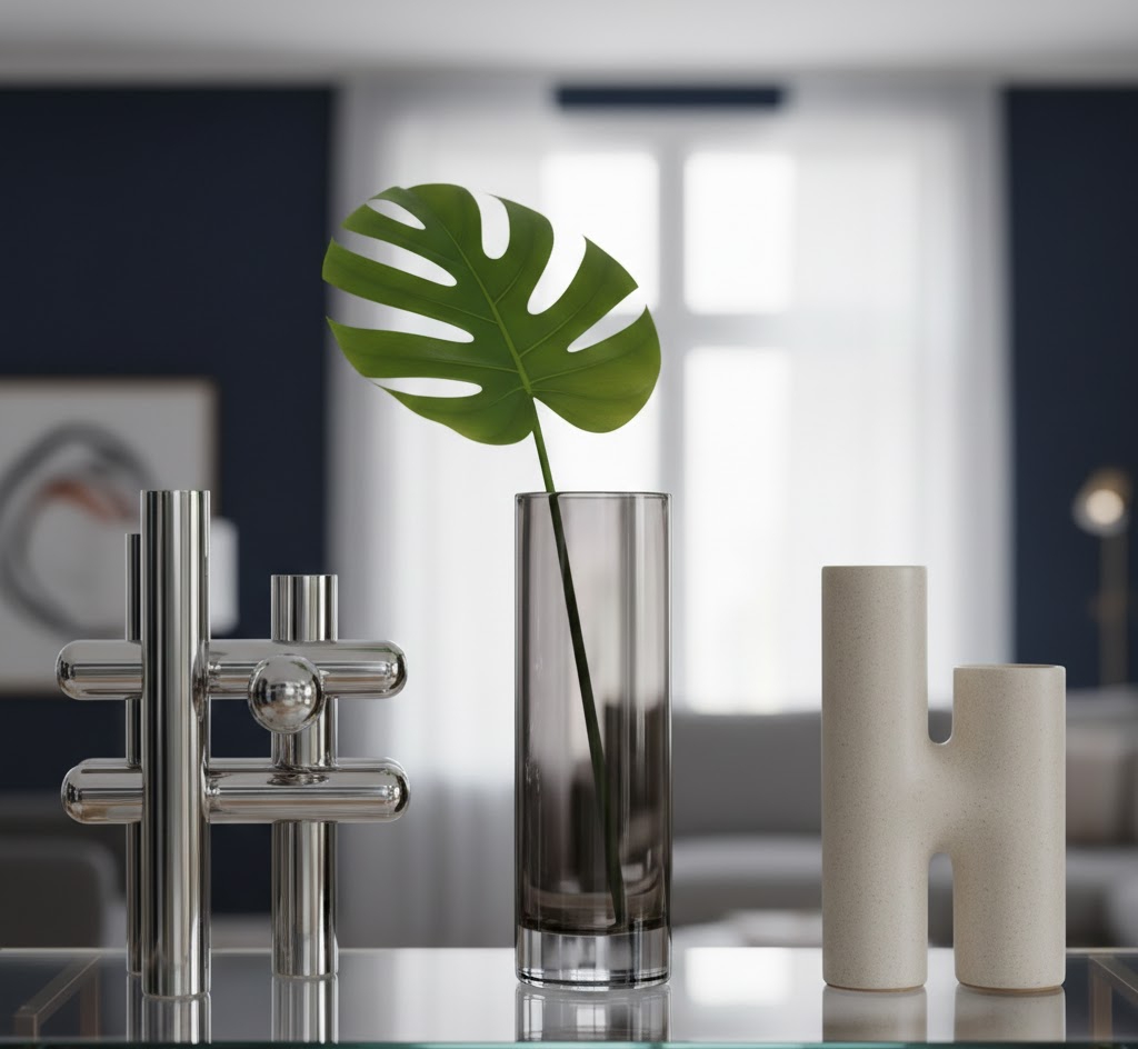 When styling a glass shelf, group a chrome object, a glass vase, and an organic element (like a plant or a book). In addition, this creates the “curated” look required for AdSense-worthy “luxury” content.